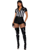 It's game on with this Call The Shots Ref Womens Costume. This striking costume features a zip-front striped romper with a bold "10" screenprint on the back. This outfit is completed with a matching belt, gloves, hat, and whistle. Perfect for Halloween or themed parties, this costume lets you take charge with style and flair. Pair it with thigh-high boots for an unforgettable look. Whether you're officiating a costume contest or just having fun, this referee outfit ensures you'll be the centre of attention.
