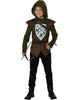 Become the legend of the forest with this Outlaw Robin Hood Boys Costume. This costume features a rugged brown vest with attached green long-sleeves and hood, perfect for adventures in Sherwood Forest. While the belt with pouch keeps treasures close and the gauntlet adds an authentic touch. Ideal for Book Week parades, school performances, or themed parties, this costume pairs well with face paint and matching accessories for a complete Robin Hood ensemble.