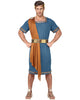 Command the entire Empire with the opulent authority of this Roman Emperor Mens Costume. This regal ensemble features a blue short-sleeve toga, accented with Greek key trims, and secured easily with a velcro closure at the back. Imperial status is declared by the attached orange sash and its dazzling gold ornate medallion. The look is completed with a lustrous gold fabric belt and the ultimate symbol of victory, a majestic gold laurel leaf headpiece. Perfect for historical reenactments, themed parties, or theatrical performances, this costume ensures you stand out as a leader. Pair it with gladiator sandals for an authentic Roman touch.