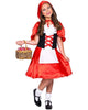 Skip into a world of timeless tales with this Storybook Red Riding Hood Girls Costume. Your little one will be ready for an adventure to Grandma's house in this classic ensemble. The dress features a sweet white ruffled bodice, beautifully accented with a black faux corset and delightful red criss-cross detailing. A vibrant red satin skirt flows over a white apron, completing the iconic look. To top it all off, the signature red satin cape with its cosy hood ties securely at the neck, making it perfect for every imaginative journey. Perfect for Book Week or fairytale themed costume parties.