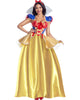 Bring your favourite fairytale princess to life in our breathtaking Fairest Princess Premium Womens Costume. This elegant costume includes a floor length vinyl with a blue bodice and accents. The bust is red with a red bow in the centre with gold lace. Down the centre of the chest is a red panel with printed gold lacing. At the waist of the gown is a peplum skirt of rose print fabric with touches of glitter, embellished with gold accents and small red bows. For regal elegance and a touch of grandeur, there is an included large high-neck white collar to attach to the back, a large red bow also for around the back for a touch of whimsical and a touch of inicents is a red headband.
