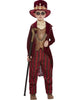 Wearing this Voodoo Witch Doctor Boys Costume, you'll have one foot on the other side and the ability to talk to the dead this Halloween. The costume comes with a burgundy tailcoat jacket with stitching print on the lapels, an attached mock top in the style of a brown vest with matching stitching detail, a pair of burgundy and brown striped pants with an elasticated waist, a matching burgundy top hat with brown hatband and attached bone detail, as well as a tooth necklace to finish off the costume. Boogie with the Boogeyman this Halloween.