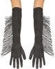 Step into the spotlight wearing these funky Black Fringe Gloves. These elbow length gloves come in a classic black and feature a matching fringe along the sides. Whether you're kicking up your heels at a Western-themed party or dancing the night away at a 1920s soiree, these gloves are your go-to accessory for adding a pop of colour and flair.