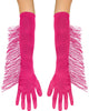 Step into the spotlight wearing these fabulous Pink Fringe Gloves. These eye catching elbow length gloves come in a hot pink colouring and feature a matching fringe along the sides. Whether you're kicking up your heels at a Western-themed party or dancing the night away at a 1920s soiree, these gloves are your go-to accessory for adding a pop of colour and flair.