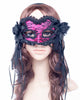 This Pink Masquerade Mask with Black Lace and Flowers is Italian made and features a beautiful black lace overlay and flowers on either side. Lace and ribbon fall from the flowers creating an elegant masquerade look. The mask is attached to a headband so you don't need to worry about it slipping off and revealing your identity too soon!