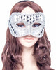 This Silver Gems Masquerade Mask is finished with silver brocade with silver and black lace detail studded with small diamond stones. The half-mask style makes eating drinking and talking easy. These masks have a clever headband mechanism that makes them very easy and light to wear.
