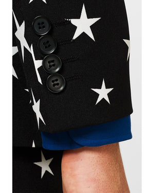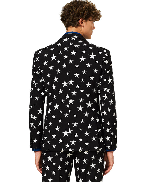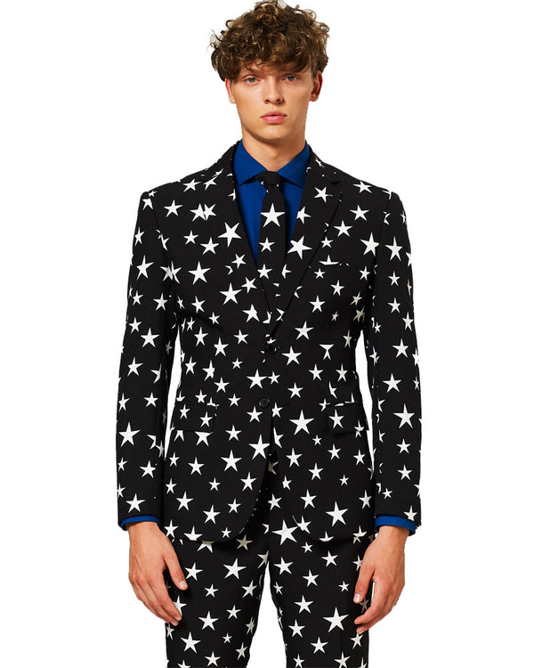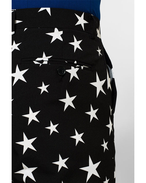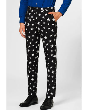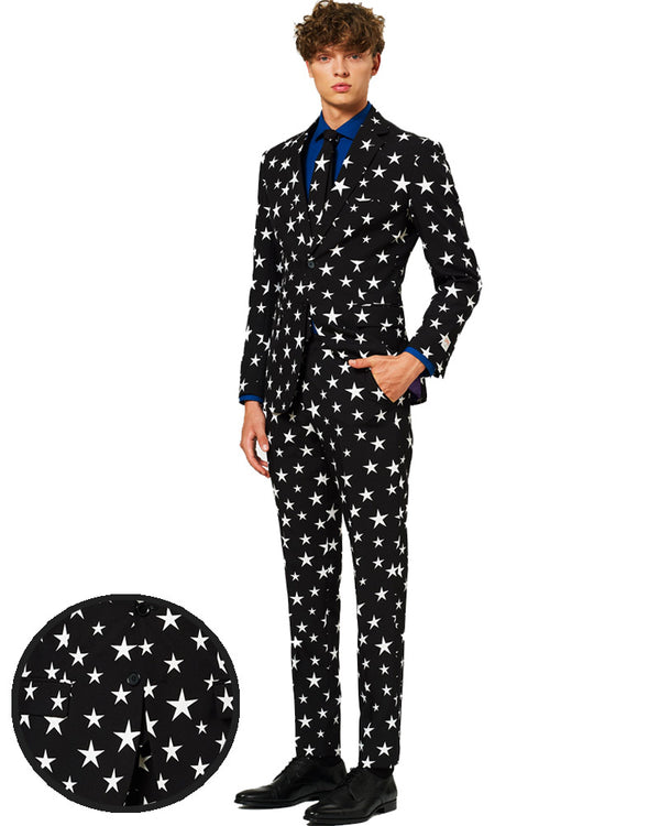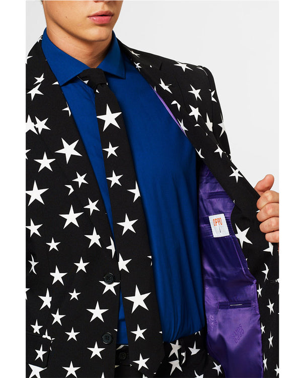Come dressed in our Opposuit Starstruck Premium Mens Costume at your next costume party. Featuring a black opposuit styled with an array of white stars. Made from a high quality suit material, the opposuit itself is fully lined with notched lapels, two front flap pockets and inside pockets. The opposuit comes complete with matching trousers with 2 buttoned back pockets and 2 working front pockets. If you’re unsure about sizes we recommend picking the larger size of the two suits as they come in a slim fit. All Opposuit pants and jackets are lined with a small amount of additional fabric so that if desired, they may be tailored to your exact length and fit by an alterations business or tailor. Also, the waistband of trousers can be adjusted 2 sizes larger or smaller than the original size.