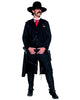 Don this Western Sheriff Mens Costume for a bit of cowboy fun. An authentic looking long line jacket in black with a white shirt insert and red necktie. A black vest with chain and pewter coloured buttons is also included, along with a sheriff's badge of course! Add a hat and your own black jeans.