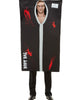 For a truly gruesome costume this Halloween, grab yourself this Body Bag Mens Costume. This costume comes in the shape of a black blood splattered body bag with a white zip up the front, 'Body Bag' in large white font on the bottom corner and an information tag about your 'body' in the top corner. This costume slips over your head and can be worn over your own clothes.