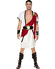 Command armies and rule cities in this Roman Caesar Mens Costume. The costume comes with a white tunic featuring gold trimming and an attached red sash. The costume is finished off with the included black and gold waist belt, matching wrist cuffs and gold leaf headband. This costume is perfect for Roman parties, toga parties, Historical themed events and more fancy dress events.