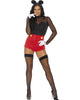 Anywhere you go will become the happiest place on earth in this Once Upon a Time Sexy Womens Costume. The costume includes a two tone romper with black mesh high neck and long sleeves as well as contrasting sweetheart neckline. The bottom half of the romper features red mini shorts with yellow button detail.