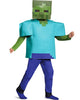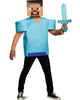 This Minecraft Zombie Steve Deluxe Boys Costume is the perfect way to bring your favourite video game character to life and spook your friends. Featuring a 3D-constructed tunic in boxy, 8-bit shaping, this costume perfectly captures the blocky look of Minecraft's iconic zombies. The included zombie character mask has an elastic strap back to secure it in place, and features the same blocky design and green pixellated flesh as the game. This deluxe costume also includes blue pants with black cuffs, completing the head-to-toe look of Minecraft's undead hero. Whether you're trick-or-treating or just playing Minecraft with your friends, the Zombie Steve Deluxe Boys Costume is sure to impress.