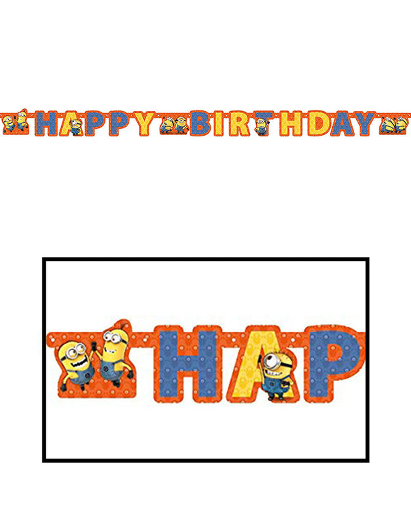 This colourful and bright Minions Party Banner will bring fun to any birthday party.This banner features our favourite characters on an orange banner saying Happy Birthday in blue and yellow letters. The banner measures 5.9ft x 5.9in / 1.8m x 15cm and is easy to hang.