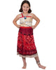The ocean is calling you with our Disney Deluxe Moana Epilogue Girls Costume. Your child would love travelling the seas with Maui on a mission to return the heart of Tafiti! A perfect costume idea for your child's Halloween or even book week celebrations! The costume is adapted from the iconic Disney princess Moana from the 2016 film Moana, featuring a colourful red dress with a digitally printed straw skirt and colourful leaves. Also included is a necklace with the heart of Tafiti, attached by the mesh across the chest.