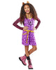 Step into the world of Monster High with this Clawdeen Wolf Deluxe Girls Costume. This wild and stylish outfit features a purple animal print playsuit with edgy pink and black striped sleeves—just like Clawdeen's iconic look. The matching foam-backed belt and fabric necklace add monster-chic flair, while the plastic headband with 3D wolf ears brings the look to life. Perfect for Halloween, dress-up days, or a runway strut through the Monster High halls.