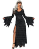 Enter the realm of eternal love and darkness with our Boneyard Bride Women's Costume. This hauntingly beautiful ensemble is perfect for those who dare to embrace the macabre. This attire features a "bone" pinstripe printed slit gown, adorned with ragged bell sleeves and hem, exuding elegance, fit for a bride of the afterlife. Whether you're haunting the halls of a haunted mansion or dancing under the moonlight at a gothic ball, this costume is sure to turn heads and capture hearts in the darkness of the boneyard.