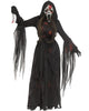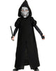 Age does not stop the reign of terror with this Scream Ghost Face Lives Aged Teen Costume, inspired by the Scream movie icon. Cloaked in a black long sleeve hooded gown with sinister zig-zag trims, you'll move like a dark shadow in the night. The black fabric belt cinches the look, while the iconic Ghost Face mask, now with an aged effect, adds a hauntingly unique twist to the classic horror character. Pair with your most menacing prop and you’ve got the perfect costume for Halloween or any frightful occasion.