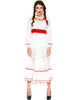 Become the doll that terrorises the big screen in this Chucky Womens Costume. This costume comes with a short sleeve red, blue, white and green horizontal striped shirt which you wear underneath the included dress. The dress comes in a blue dungaree style with two red buttons, a bright pattern, and a pocket on the front with 'Good Guys' printed in red.