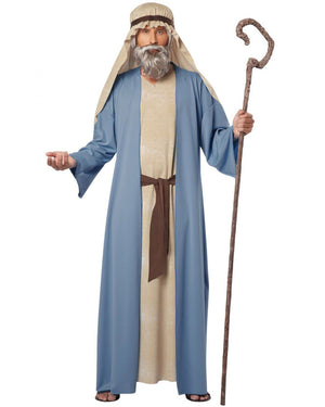 This Noah Mens Costume is great for a number of different biblical characters. This costume comes with a cream coloured robe with attached sky blue overcoat and a matching headpiece.