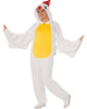 This costume includes a jumpsuit made of soft yellow faux-fur material which secures at the front with a velcro strip, attached hood featuring felt chicken details and large wings that secure to the arms with elastic strip. Each leg also has separate openings with an elastic band. It also comes with matching yellow boot tops which have an elastic band at the top to secure to leg, and large elastic strip at the bottom to secure to foot to complete the look. Perfect for Easter.