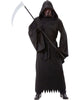Become the harbinger of doom and walk between worlds with this Grim Reaper Boys Costume. This classic and terrifying costume will transform your child into the embodiment of shadows. The costume is centered on a long, flowing robe featuring a ghastly printed skeleton ribcage and a chilling chain detail. A black hood with an attached, skeletal grim reaper mask conceals their face, while the long sleeves feature eerie, gauzy draping that seems to float on the air. It's the perfect attire for collecting souls on Halloween night. Pair it with bone gloves and a scythe prop for an extra chilling effect.