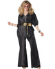 The time to boogie is now and this Gold Disco Queen Womens Costume is perfect for looking the part. The black and gold jumpsuit is full length and features baggy sleeves, an elastic waist and a cross-over front. Also included is a black sequined belt with velcro closure. Perfect for any 70s party or disco theme - even to look sparkly on New Years Eve!