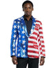 Turn heads and dazzle in patriotic style with this Sequins USA Mens Suitmeister Jacket. This slim-fit jacket sparkles in red, white, and blue sequins, designed to mimic the iconic stars and stripes of the USA flag. Featuring a two-button front, notch lapels, faux flap pockets, and a fully lined interior, this jacket delivers a perfect mix of bold fun and sleek tailoring. Whether it's a 4th of July party, an international themed event, or just because you want to shine, this jacket ensures you’re the star of the show.