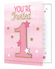 Invite all your guests in style with these adorable One Little Star Girls Invitations Pack of 8 with a number one design with stars.