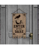 Warn your party guests of the horror that waits for them behind the door with this Boneyard Hessian Burlap Door Banner. This banner features a crow perched on a skull with "Enter If You Dare" printed on the front in black. This banner also has an attached loop for easy hanging. Combine with our range of Boneyard party supplies for a terrifyingly good Halloween celebration.
