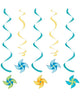Your little boy will love these colourful Turning One Boys Hanging Decorations. The hanging decorations feature blue, yellow and green pinwheel cutouts on blue and yellow swirls and measure 91cm. Check out our complete range of Turning One Boys party supplies for a fully coordinated celebration.