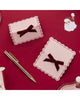 - Pink paper plates with red wavy edges.