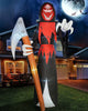 It’s all about tricks, treats and terrifying screams with this Standing Clown With A Candy Plate Animated Decoration 1.8m. This standing clown with a candy plate animatronic is designed with a menacing, evil smile and multi-colour light up eyes. As its head moves side to side, it’s not just offering sweets; it’s serving up sinister laughing sounds and a taunting phrase: “Hello little kiddies, how about some tricks and treats?” Also included is a stand for easy setup. A great addition to your front door or porch, this creepy clown will make quite the impression with trick-or-treaters and guests this Halloween.