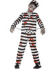 You’ll be serving time for all eternity with this Zombie Convict Mens Costume. This costume includes a short-sleeved top, pants and a prisoner hat all printed with black and white horizontal stripes. Zig zag trims adorn the top and pants, for a worn and torn look. A prison number is printed across the front for a touch of authority to their undead delinquency – after all, even zombie convicts need a bit of order in their chaos. Blood splatter prints on the legs, chest, and hat crank up the creepiness, proving that our zombie convict has been on a rampage of mischief. Finish the look with zombie or prisoner accessories from our range and get ready to cause a fright at your next Halloween party.