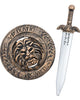 Prepare for epic battles and heroic adventures with our Gladiator Lion Shield and Sword Prop Set to complete your gladiator look. The included round shield features a weathered look, complete with a fierce lion's head at the centre. Roman writing adorns the top and bottom, while a laurel leaf design graces the sides, evoking the glory of the Roman Empire. The included sword prop is crafted to match the shield, with its weathered handle and short blade designed to slip through the gaps in the shield.