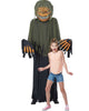 Walk the nights spooking the neighbours in this Jack O Head Kids Costume or through the cornfields. This spooktacular costume features a long black robe painted with weathered detailing and a jagged hem and sleeves. There is a black hood, a dark brown rope belt and a pair of orange sharp-tipped gloves. To finish the costume there is a large pumpkin half mask with two beady yellow eyes and a large black scary mouth.