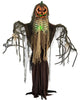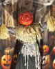 - Standing scarecrow with menacing pumpkin head animatronic.