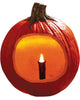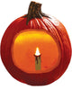 - Smiling pumpkin base with illuminated design.