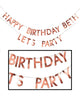 Celebrate your special day with this Mix It Up Rose Gold Customisable Happy Birthday Bunting. The bunting features metallic rose gold letters saying 'Happy Birthday Lets Party' and allows you to customise the name fo the birthday boy/girl.