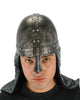 Become a knight of the round table in this Bronze Knight Helmet. The shell of the medieval style helmet is made of a sturdy poly material and has a tin-like sheen to it. Shading gives the helmet a weathered look and metal rivets decorate the outside of the helmet. The nose guard is removable and attaches with two snaps so you can wear it over you nose. A chain-mail style, polyester hood is attached to the helmet and drapes on top of the shoulders.