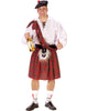 In the wake of Outlander, this Traditional Scottish Mens Costume will make you the star of any party. In a deep crimson tartan this outfit will definitely capture a few eyes. Including a red tartan hat that matches a sash and kilt, as well as a lace up white shirt, and tan brown gauntlets and belt, this costume is ready to rumble! Simply add some knee high socks and shoes!