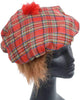 Celebrate your love for the old lands with this Scottish Tam O Shanter Mens Hat. This great hat will surely show off your Scottish pride in style. This hat is made from red tartan fabric with attached hair. Add to any Scottish costume or kilt for a great highlander look.