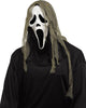 - Overhead Ghost Face mask with black hood and grey gauze shroud.