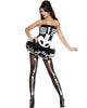 Look bone chilling this Halloween in this great Skeleton Womens Costume. This bone-tastic costume features a tutu style dress with detachable clear straps. The bodice of the costume features white skeleton bones printed on it with a small black tutu skirt with with edging around the waist. Add some stockings and sexy heels for a great look this Halloween or any spooky themed party.
