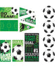 Get your party guest into the sporty spirit when you hang this Goal Getter Soccer Hanging Swirl Decorations Pack of 12 at your party and surround everyone with the soccer spirit. These hanging swirls come in a pack of 12 with the swirls coming in different shades of green, from light green to dark forest green. Attached at the end of some of the swirls are round cutouts of black and white soccer balls and others with wording associated with soccer or sport, including; 'Game Time', 'Go For The Goal' and more. Decorate the rest of the party with our selection of soccer or sport themed party supplies for a coordinated party look.