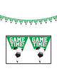 Let everyone know there is a party going on as you hang this Goal Getter Soccer Pennant Banner for your next party celebration. This sporty banner features 12 green pennant shaped flags all with an image of a black and white soccer ball along the bottom and along the top printed in large white letters is 'Game Time'. Great for any fan of the soccer or for a sport themed party where you want to include a variety of sports. Pair this with our range of Soccer or Sport party supplies including balloons, party plates, tablecovers and more.