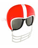 Score a style win with these awesome Red Football Helmet Glasses. These black glasses feature a red and white plastic football helmet, with a silver face shield attached with a chain. Whether you're completing your football costume or just want to show your love for the game, these glasses are a winning choice.