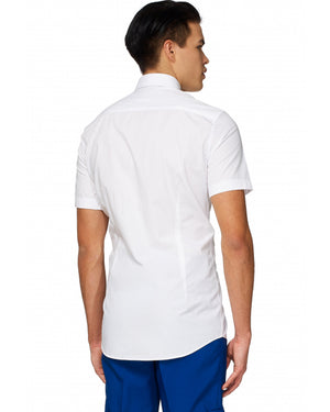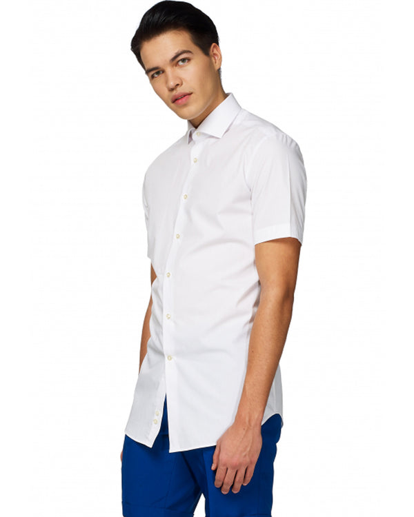 During the summer wear our White Knight Mens Shirt. Included is a slim fit white short sleeve button-up shirt with collar, white buttons and a modern tailored fit. Great when paired with our summer opposuits.