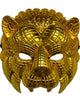 Join the super-rich, elite VIP members and watch the final rounds of the Squid Game wearing this Squid Game VIP Animal Gold Lion Mask. The mask is a half mask and comes in the shape of a lion face. The mask is gold covered in vertical and horizontal textured lines and around the back is a thick black elastic strap to keep in place. This mask is based on the masks worn by one of the rich VIP members from the hit Netflix series Squid Game. Pair this mask with your fanciest suit or outfit to complete the character.