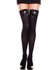 Our Black Thigh High Stockings with Satin Bow and Cameo could be worn as the finishing touch to a steampunk or victorian style outfit. Detail is everything! These gorgeous stay ups have a black satin bow and dainty white cameo on a black background in a circle of little diamontes.