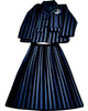 This Ghoul School Girl Womens Costume will inspire you to study the strange and unusual. The ensemble includes a blazer style jacket and long skirt in a vertical black and blue stripe material. On the chest of the jacket is an academy crest, to show you are studying and ready to learn. Whether it's for Halloween or a TV and movie themed party, this costume is sure to do the trick.